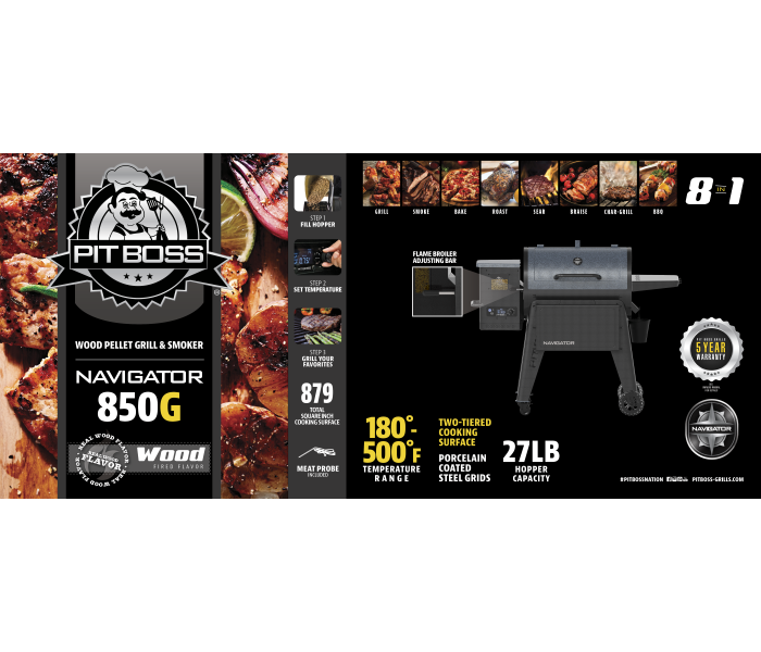 SKU 6478 • The Pit Boss 850G Navigator Series Grill features the real-wood flavor of an outdoor